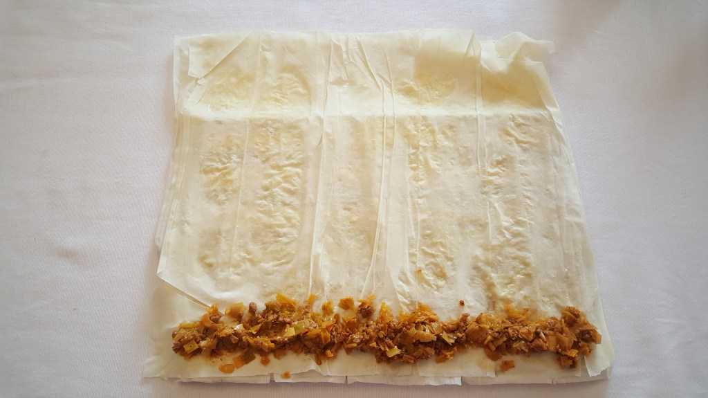 Bu haftanın ilk tarifi bir börek olsun. Mevsim sebzesi pırasayı tercih ettim. Biraz da kıyma kullanarak zenginleştirdim. Baklava yufkasıyla incecik, sosu ile çıtır çıtır oluyor. Yemelere doyamıyorsunuz. Denemeden geçmeyin.