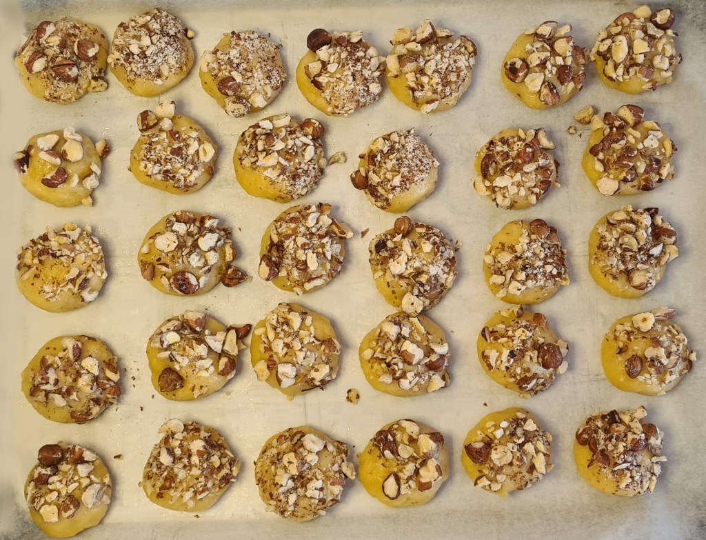 - Ceviz büyüklüğünde parçalar alıp yuvarlayın. Yumurta beyazına ardından fındık kırıklarına batırıp tepsiye dizin.