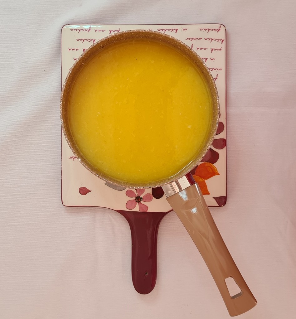 - Portakal suyu, nişasta ve toz şekeri iyice karıştırın. Ocakta karıştırarak pişirin. 2-3 dakika kaynatın.