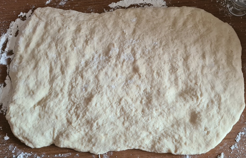 - Hamuru hafif unladığınız zeminde elle dikdörtgen şeklinde 1 cm. kalınlığında açın.