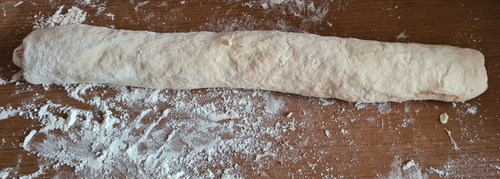 - Hamurun uzun kenarından rulo yapın, çok sıkı sarmayın.