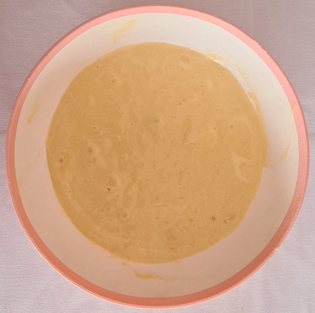 - Ardından erimiş tereyağını ekleyip çırpmaya devam edin.