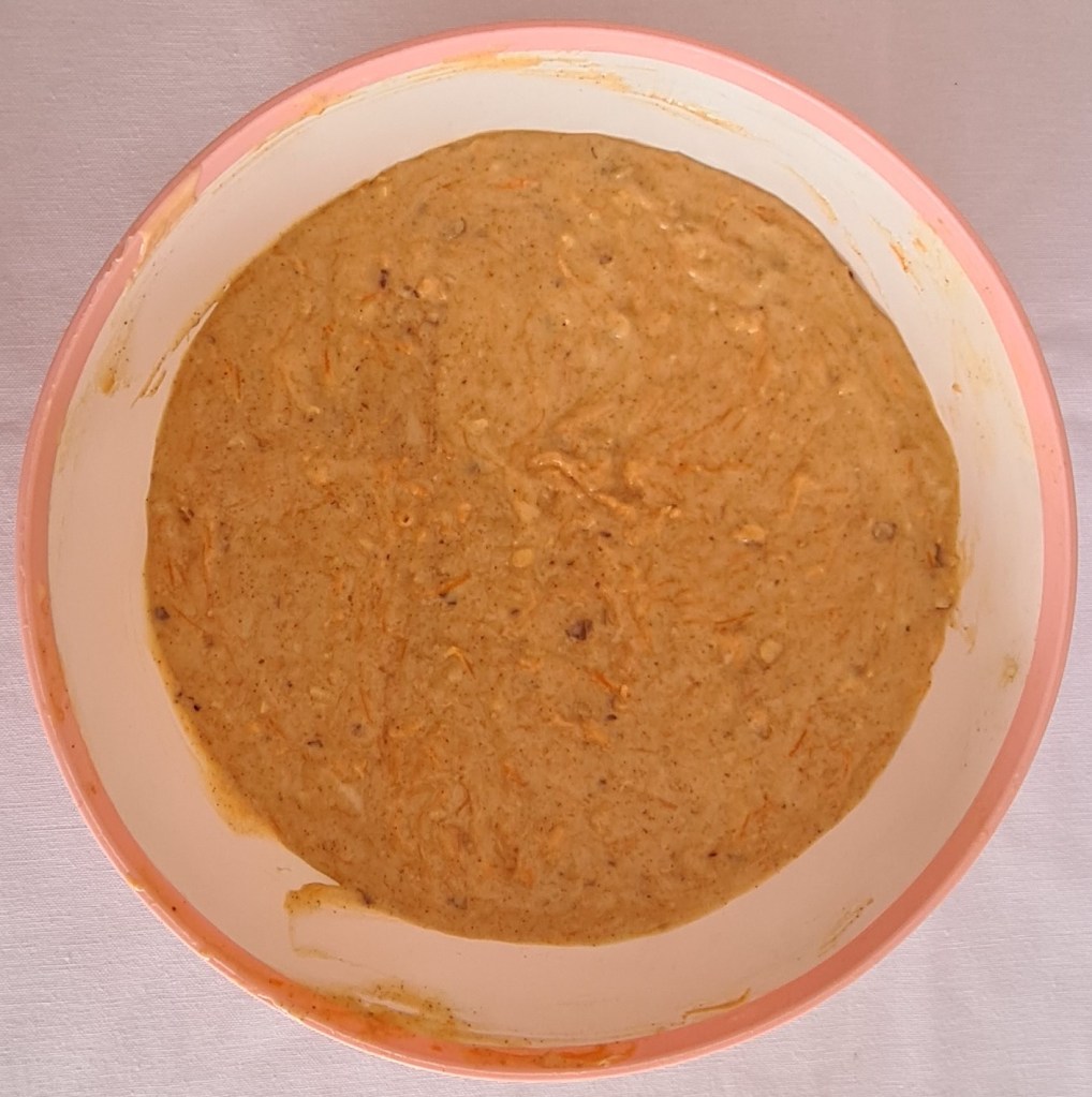- Rendelenmiş havucu, cevizi ve tarçını ekleyip spatula ile karıştırın.