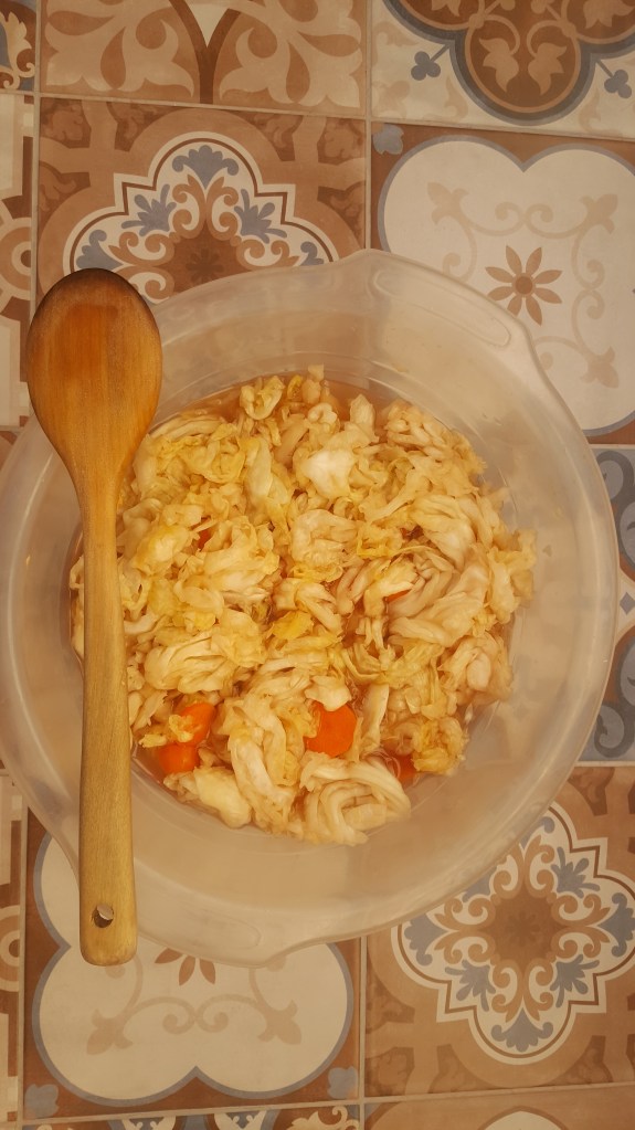 - Lahanalar diriliklerini kaybettiğinde havuçları halka halka doğrayıp ekleyin.