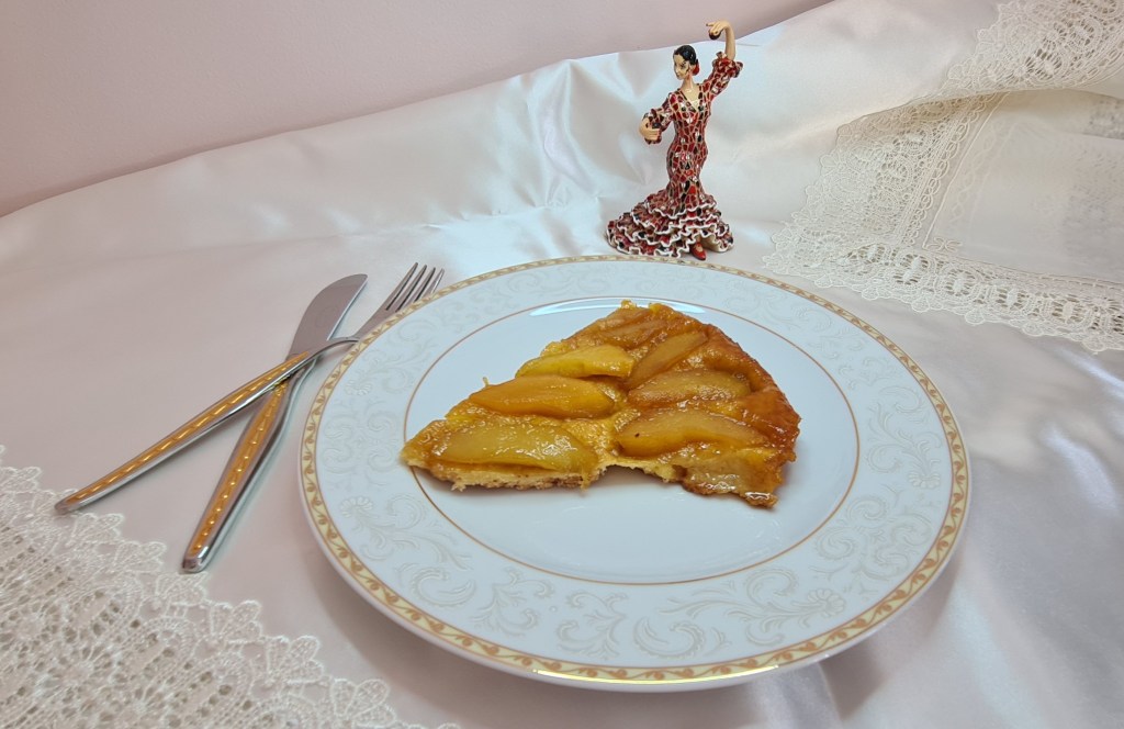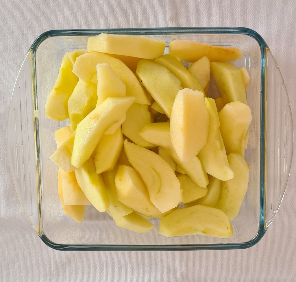 - Elmaları soyup temizleyin. İnce şekilde dilimleyin. Karamelin üzerine şekilli olarak elmaları yerleştirin.