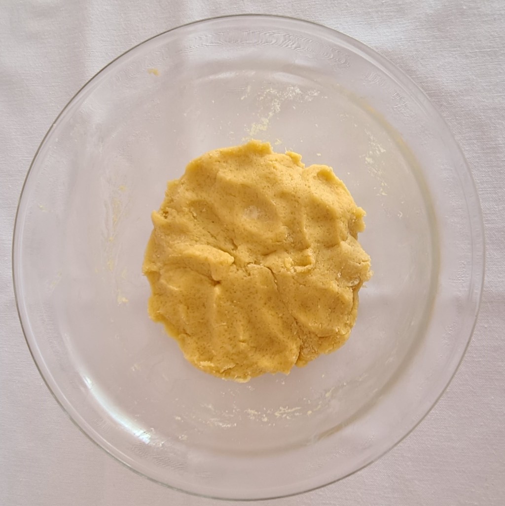 - Tereyağının 125 gr. ını, unu , yumurtayı ve ½ su bardağı toz şekeri yoğurun. Hamuru 30 dakika buzdolabında dinlendirin.