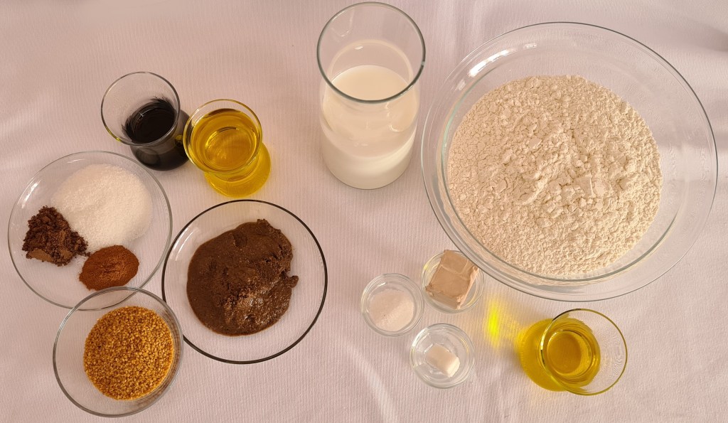 - Üzerine biraz sıvıyağ ile açtığınız haşhaş ezmesini sürün. Ardından toz şekeri, yenibaharı ve tarçını karıştırıp serpin.